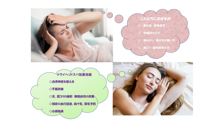 脳疲労・眼精疲労・なかなか寝付けない方に眠り改善ヘッドスパ。